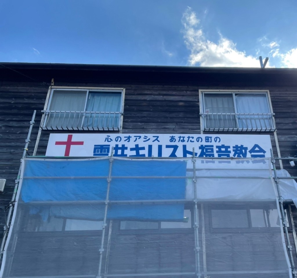 雲井教会の看板を、なんと四半世紀ぶりに塗り直しました!
