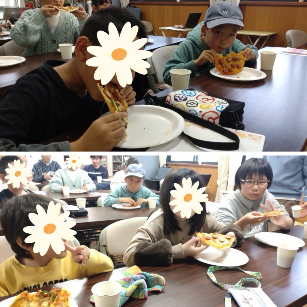 お待ちかねのピザ作りでは、みんな楽しく生地をこね、好きな具をトッピング🎶