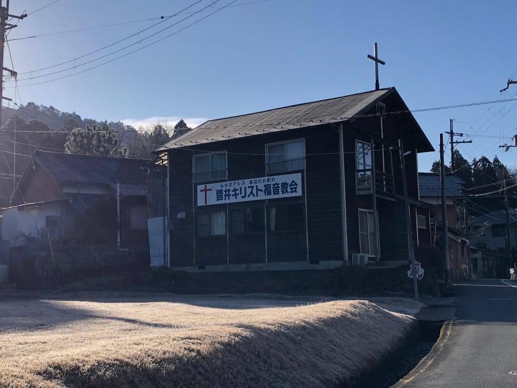 教会前の広場の霜が、寒さを物語ってくれています。