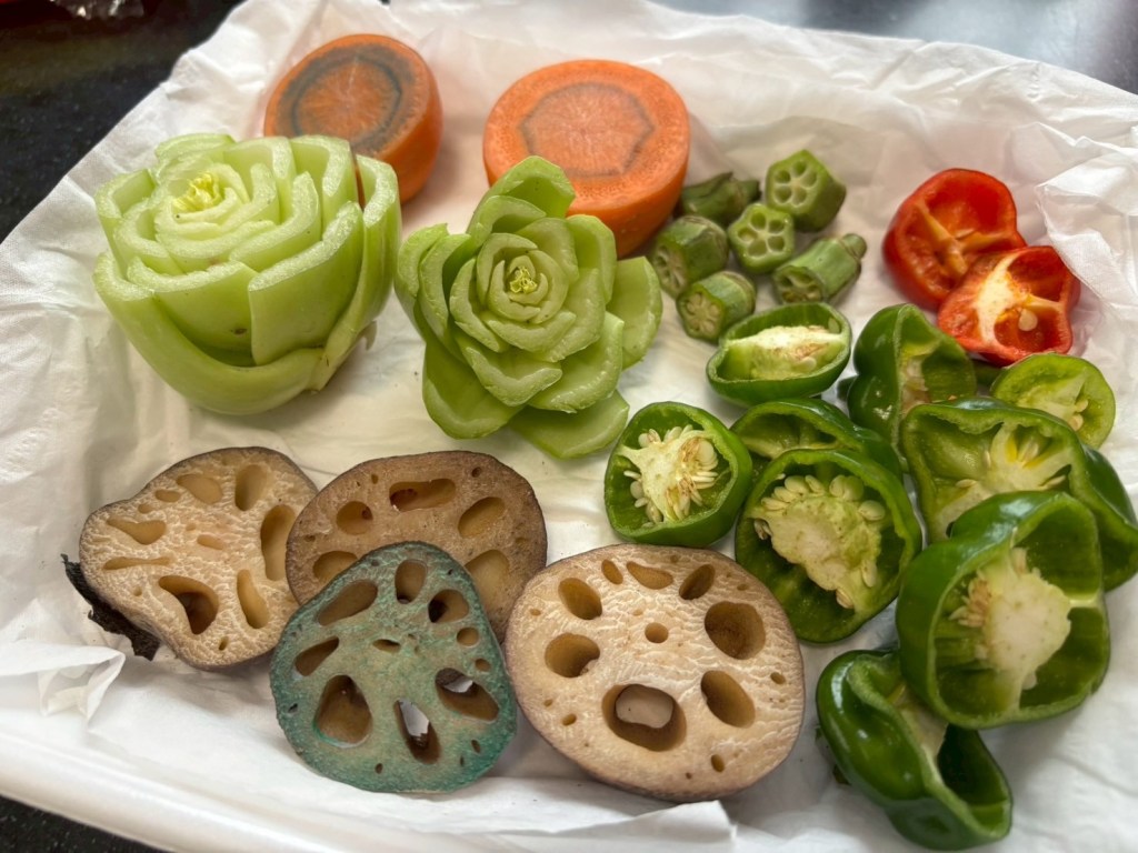 カードにはイザヤ書43:4をスワヒリ語と日本語で印刷し、周りを野菜スタンプで飾りつけました。