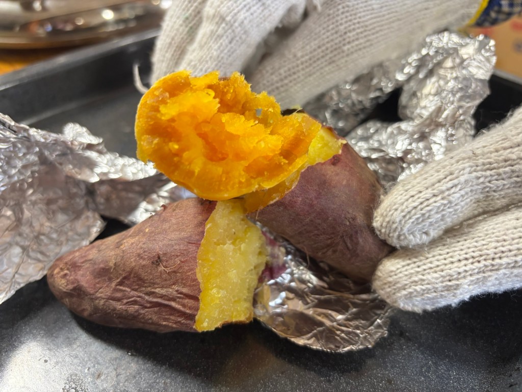 焚き火で焼くのと負けずとも劣らぬ、少し焦げ目もついて、とっても美味しかったです🍠💛