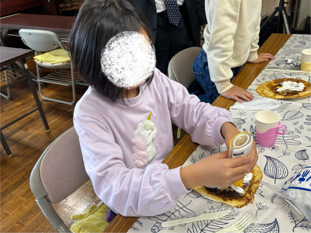 クレープしました💛 投稿者: kumoichurch 投稿日: 2026年3月1日 2月のキングダムキッズは、クレープでした✨ はいチーズ! フィンランド風、少し厚めの生地のクレープ🇫🇮ボリューム満点です!しかしみんな、2枚はペロリ👏 もっちりしてとても美味しかったです😋 お話を聞いています イエスさまの子ども時代の話も聞きました😌イエスさまも迷子になったり、汗水ながして働いたり、私たちと同じ人間として歩まれたのですね。 そんなイエスさまのことを、もっと深く知っていく1年にしましょうね✨✨ ご参加くださったみなさん、ありがとうございました😊 共有: X で共有 (新しいウィンドウで開きます) X Facebook で共有 (新しいウィンドウで開きます) Facebook いいね 読み込み中…